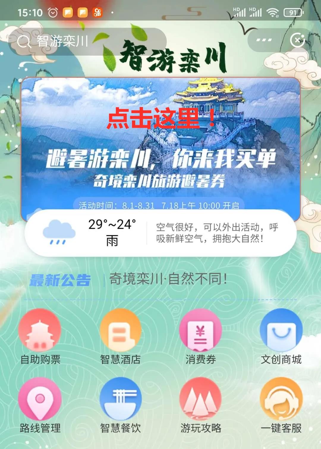 點(diǎn)擊首頁面“避暑游欒川,你來我買單”圖片,