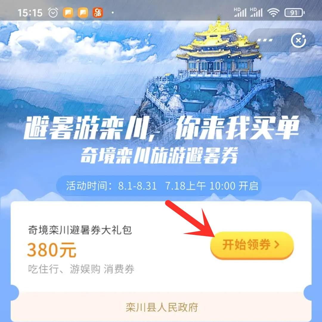 點(diǎn)擊“奇境欒川避暑券大禮包”—開始領(lǐng)券。