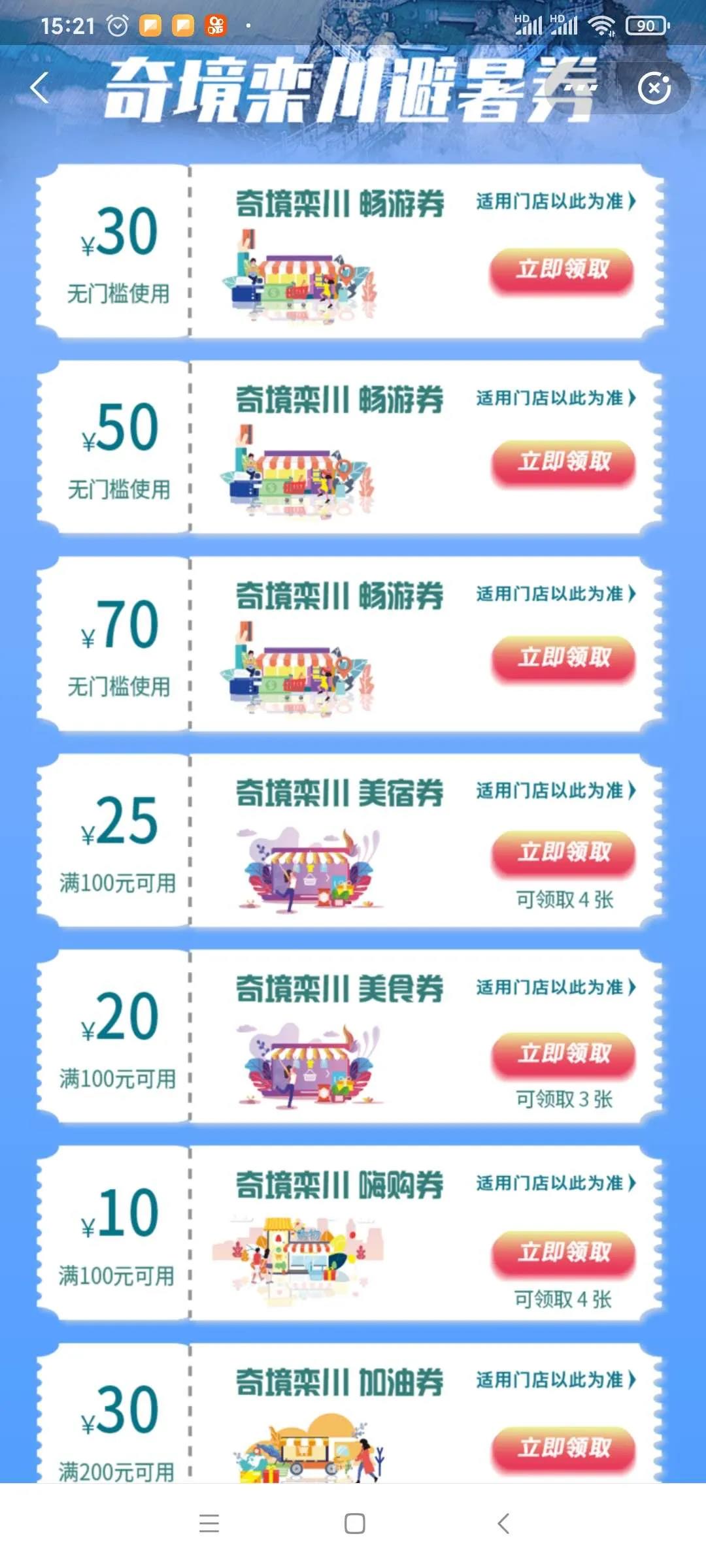 在領(lǐng)券頁面中,逐個(gè)領(lǐng)取各類避暑券。