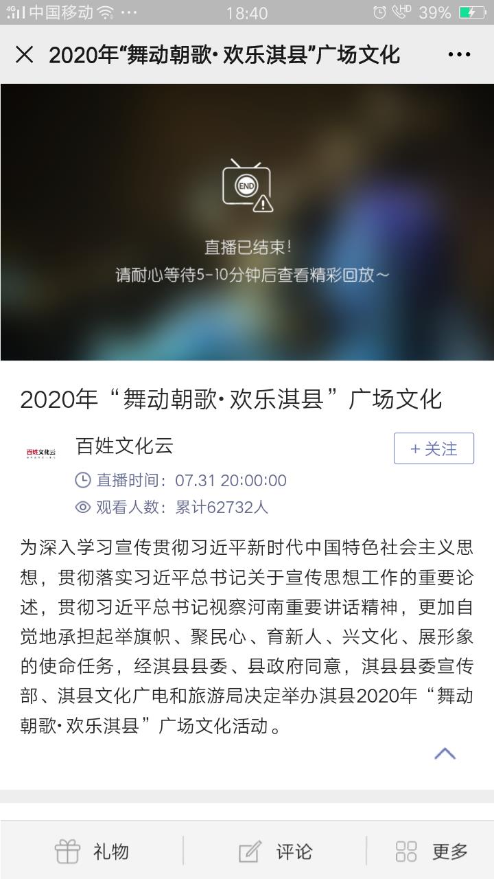 據(jù)悉,“舞動朝歌 歡樂淇縣”群眾廣場文化活動由淇縣縣委宣傳部、縣文廣旅局主辦,淇縣文化館承辦,靈山街道辦事處、朝陽醫(yī)院協(xié)辦,主會場在靈山風(fēng)情小鎮(zhèn),每周三、五晚上演出,預(yù)計演出26場,節(jié)目由各縣直單位提供。今年在廣場演出的同時,還在“淇縣公共數(shù)字文化云平臺”“百姓文化云”兩個網(wǎng)絡(luò)平臺實(shí)時直播,觀看人數(shù)達(dá)6萬人次之多,使大眾的眼睛再次聚焦到了靈山風(fēng)情小鎮(zhèn),感受小鎮(zhèn)的獨(dú)特韻味。