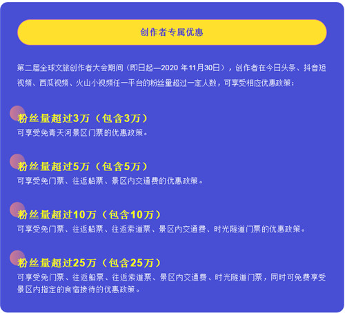 此外,青天河為全球文旅創(chuàng)作者,準(zhǔn)備了超級優(yōu)惠的游玩政策讓您無后顧之憂,全身心的投入到文旅創(chuàng)作中去!將您眼中的青天河之美放大到全世界,讓全世界感受太行山中這顆明珠的魅力!