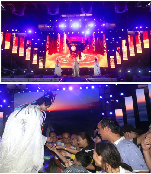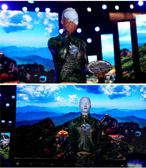 不論是來自鄭州的知名網(wǎng)紅男團(tuán)——HLT(胡辣湯)唱跳男團(tuán),七位帥氣的小哥哥,帶著動感的舞步引爆全場。還是行為藝術(shù)家著名彩繪師王亮將自身完美融入老君山的山水畫卷之中或是極限舞者知名網(wǎng)紅達(dá)人陳桃給大家?guī)淼摹洞蟓h(huán)舞》都是極具個人魅力的,牢牢抓住了現(xiàn)場觀眾的目光。