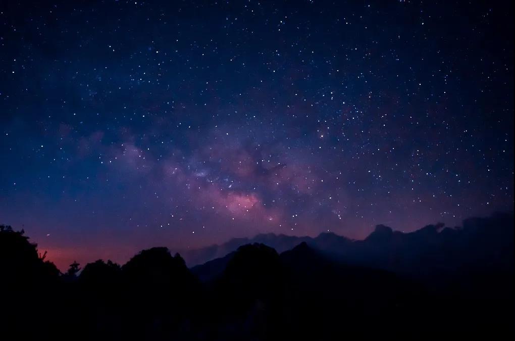 夜晚浩瀚星空、銀河布滿天幕