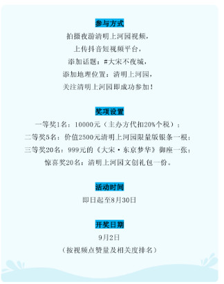 如果參加#大宋不夜城 抖音話題挑戰(zhàn)賽,還可贏超豐厚現(xiàn)金大獎!