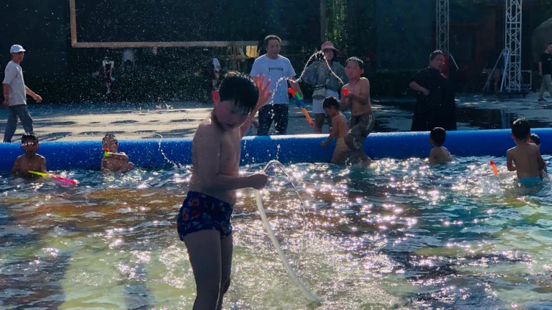 活動(dòng)期間,雞冠洞還在景區(qū)中心廣場(chǎng)新增加了超多的玩水設(shè)備,各式水槍,超大藍(lán)色充氣水池,還有不間斷噴出水霧的水炮,現(xiàn)場(chǎng)水霧朦朧,清涼舒爽!