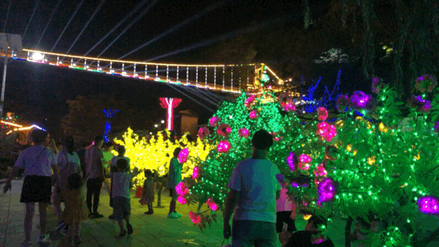炫目的燈光,彩色的霓虹,動(dòng)感的音樂,歡樂的游客。夜晚的雞冠洞,成了歡樂的夢(mèng)幻世界。