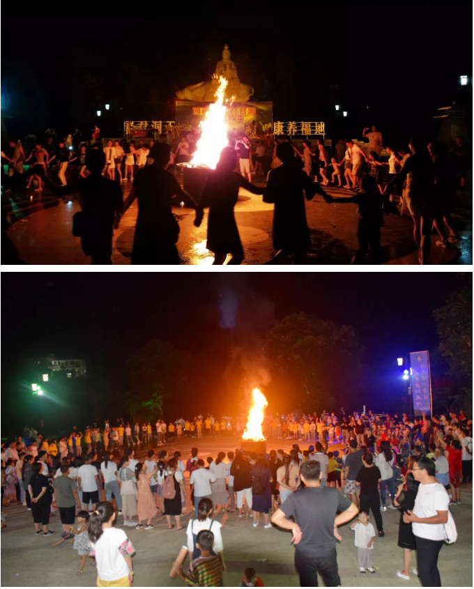 篝火將整場活動的氛圍推上了高潮,游客們圍在熊熊燃燒的篝火四周,手拉著手,伴隨音樂歡快起舞!歡呼聲、音樂聲響成了一片,處處洋溢著歡樂與幸福!