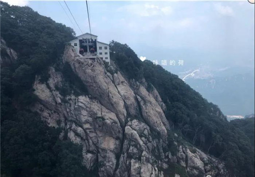 坐在纜車?yán)铮仡^看,索道站建立在懸崖峭壁之巔!