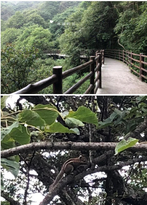 看到了嗎?一只可愛的小松鼠正穿梭于綠樹之中。