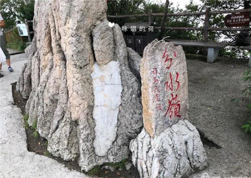 旁邊山石上“老君山滑脫峰林舉世無雙!”,乃世界地質(zhì)公園評審專家趙遜院士贊嘆之譽(yù)!