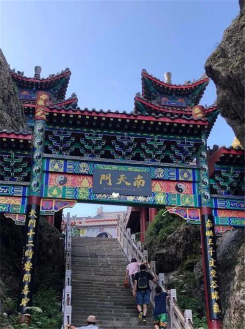 南天門是人們上山的唯一一條道路,在山下觀望老君廟如在天上。只有努力攀登、埋頭攀登,才能通過這段長長的、陡峭的臺階來到巍峨的道觀群。