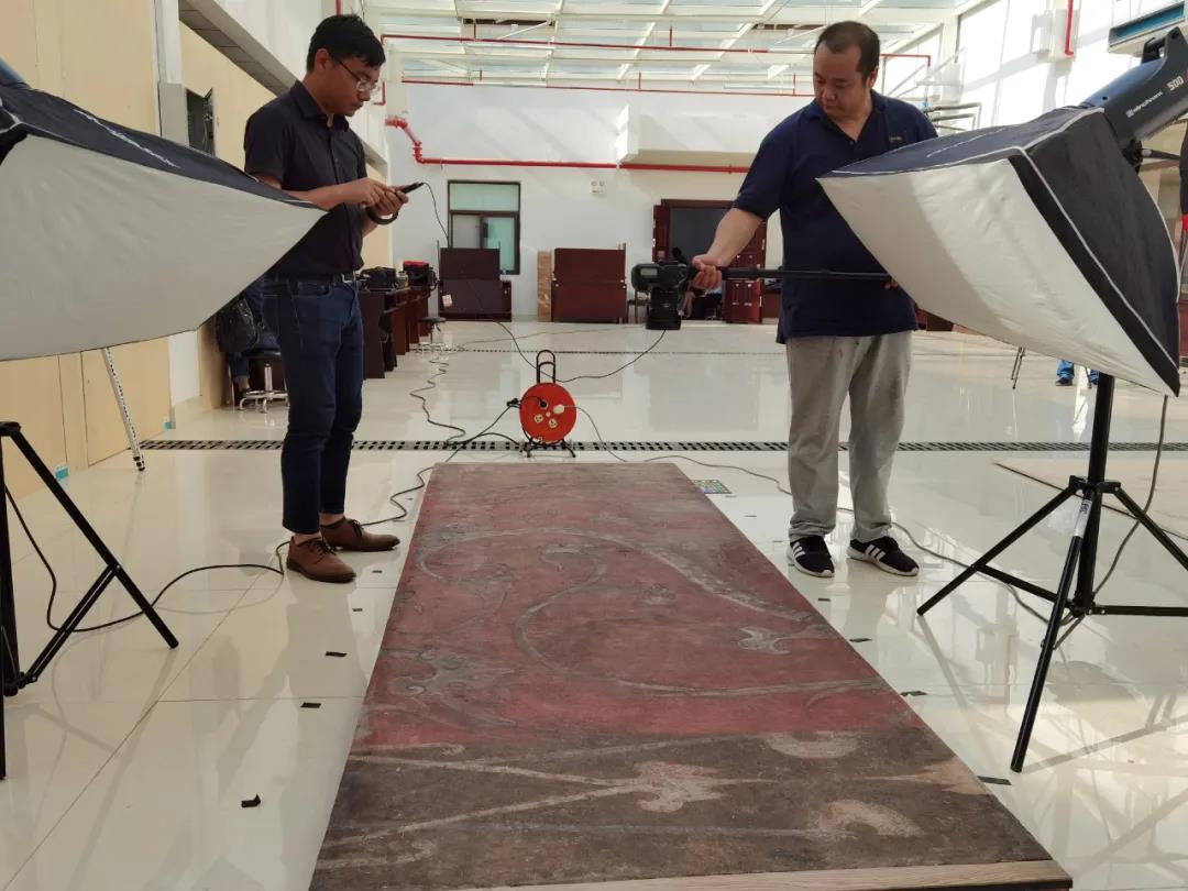 8月9日—10日,永城市旅發(fā)集團芒碭山旅游區(qū)攜專業(yè)技術人員前往河南省博物院,對被河南博物院永久收藏的“四神云氣圖”壁畫進行數(shù)字化采集與梳理,這也是首次系統(tǒng)的將面積高達16.8平方米的“四神云氣圖”,以600dpi的超高精度完整記錄下來,對壁畫后期的保護與傳承將起到非常重要的作用。