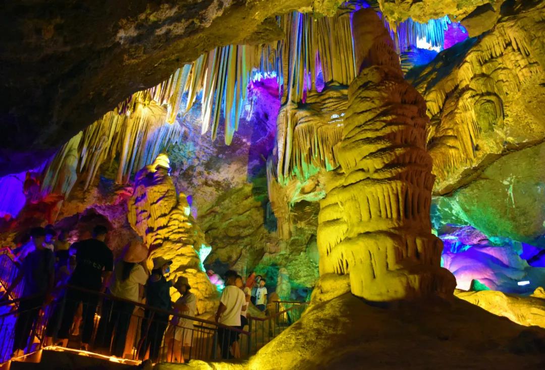 在夜晚五彩夢幻的雞冠洞,