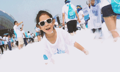 在漫天飛舞的白色泡沫里,