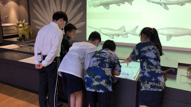 研學(xué)博物館突破封閉式展柜襯里方式,大量使用開放式展臺陳列魚類,爬行類,硅化木類化石。中小學(xué)生都可以親手體驗(yàn)魚鱗、龜甲和木材的質(zhì)感,從而建立對動(dòng)植物化石的準(zhǔn)確認(rèn)識。