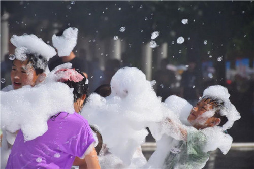 在泡沫里玩耍,探尋不一樣的童年樂趣,讓歡呼聲、尖叫聲,匯集成這個(gè)夏天最動(dòng)聽的旋律。