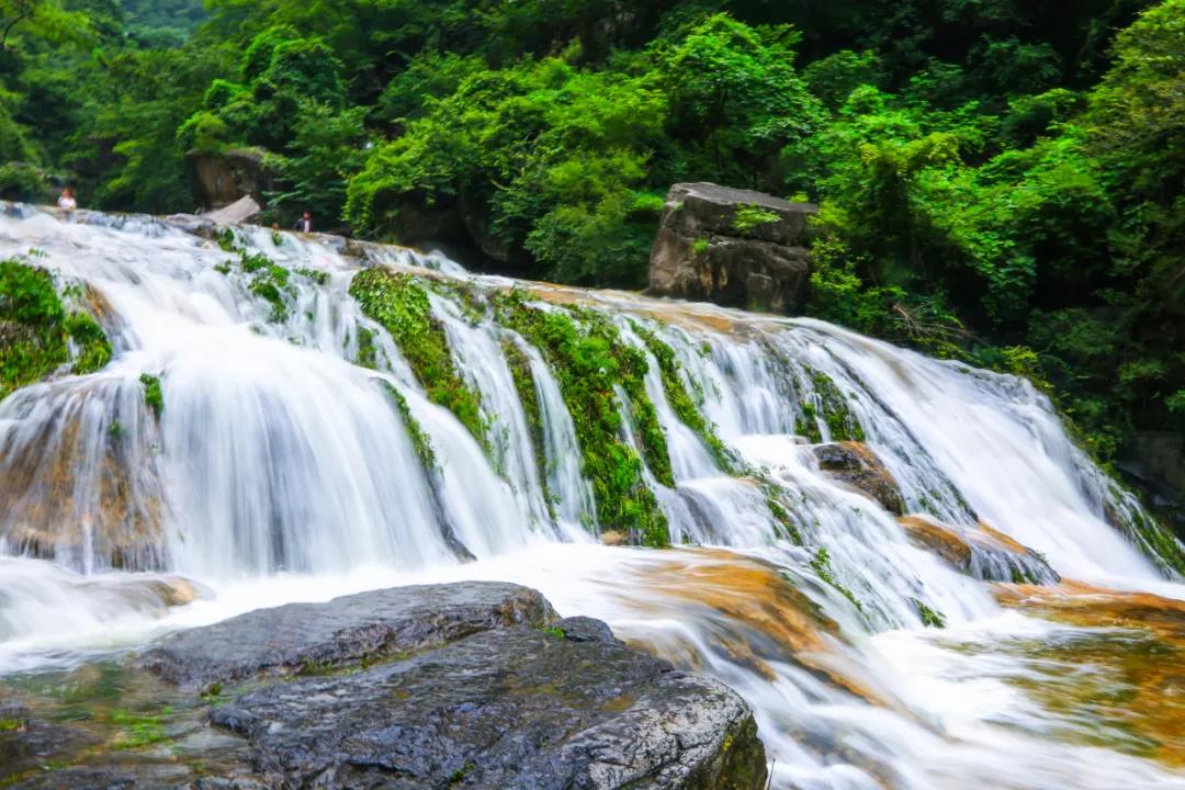 瀑與瀑競鳴,潭和潭比幽。以山為景,以水為樂,一步一景,景景如畫,鳥鳴聲、飛瀑聲、山泉聲......大自然奏響的交響樂,震撼著視覺,撞擊著心靈,形成了一幅獨具韻味的山水畫卷。