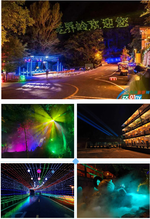 絕美的燈光秀、水秀、建筑光影秀、巡游、燈光互動(dòng)等,夜游線路增添了“密林尋蹤”、“魔法空間”,“趣園”、“光影時(shí)空”分區(qū)。更有獨(dú)具特色的“回眸一笑”夜間演藝,配套了VR、AR技術(shù)的全息投影、水幕舞臺(tái)音樂(lè)節(jié)、紗幕情景劇等特色劇場(chǎng),全新的老界嶺,令游客耳目一新,震撼叫好!