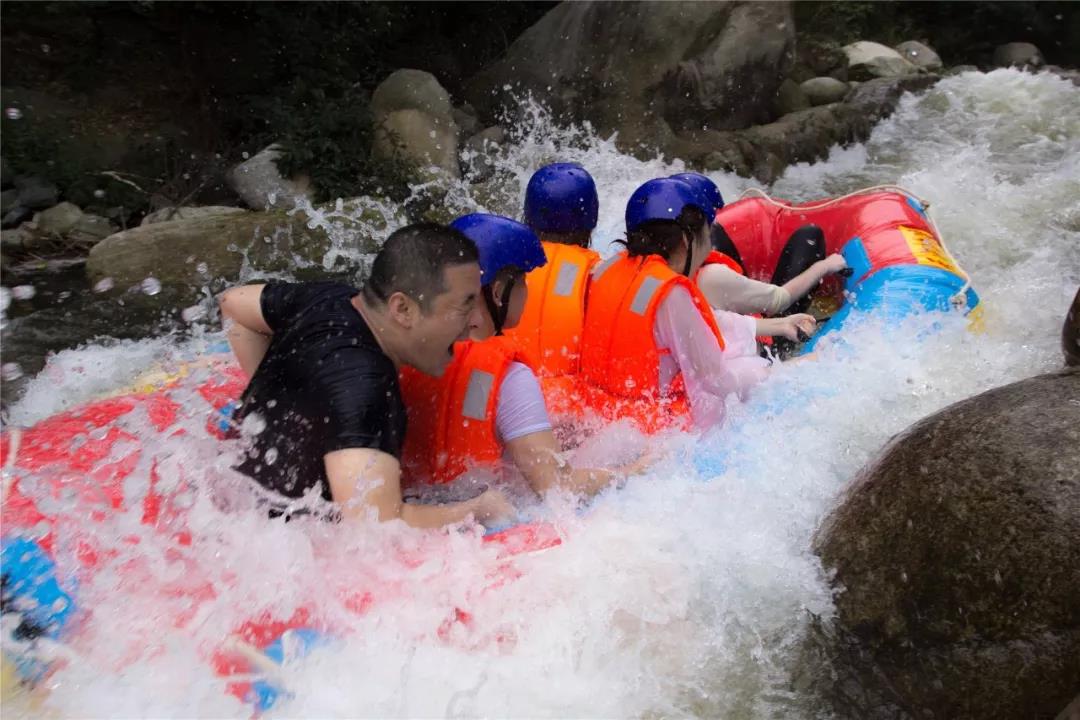 沿山路而上,河流漸急,天河沖浪中的氣墊船飛流直下,眾人驚呼不絕,大有“輕舟已過萬重山”的氣勢。浪急如瀑之下是潭碧如玉,氣船緩緩而行,一動一靜,林翠水碧,清涼自生,詩意自涌。有詩云:天河沖浪浪連天,曼江漂流流青曼。盛夏戲水輕蔭里,驚叫聲落碧玉潭。