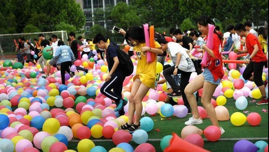 返程:兩人雙手背后,僅用頭部固定夾住一個氣球,合力將氣球送至原點,身體其他部位不可接觸氣球或者互相碰觸。