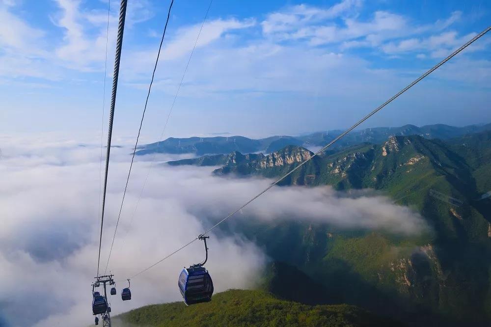 乘坐索道迎風(fēng)而上,沖散云層