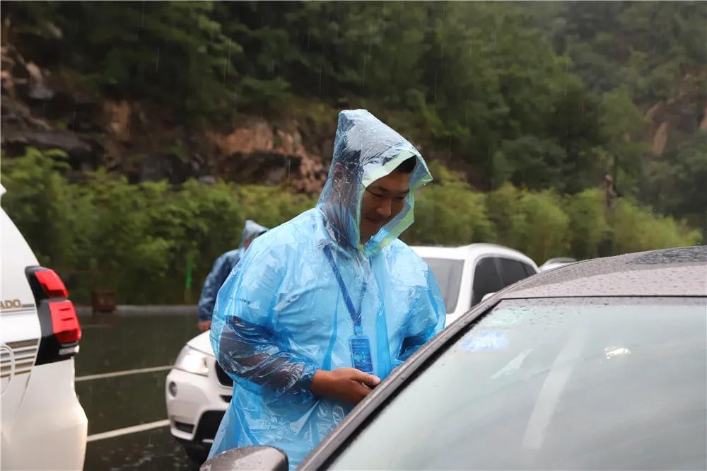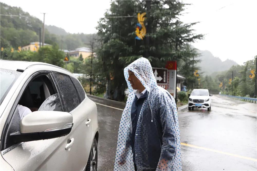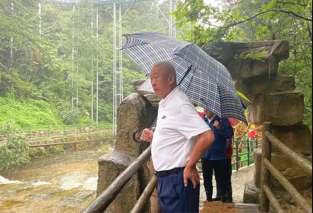8月20日,景區(qū)下起大雨,為了保障各區(qū)域游覽安全。老君山董事局主席楊植森冒雨到各區(qū)域查看汛情。
