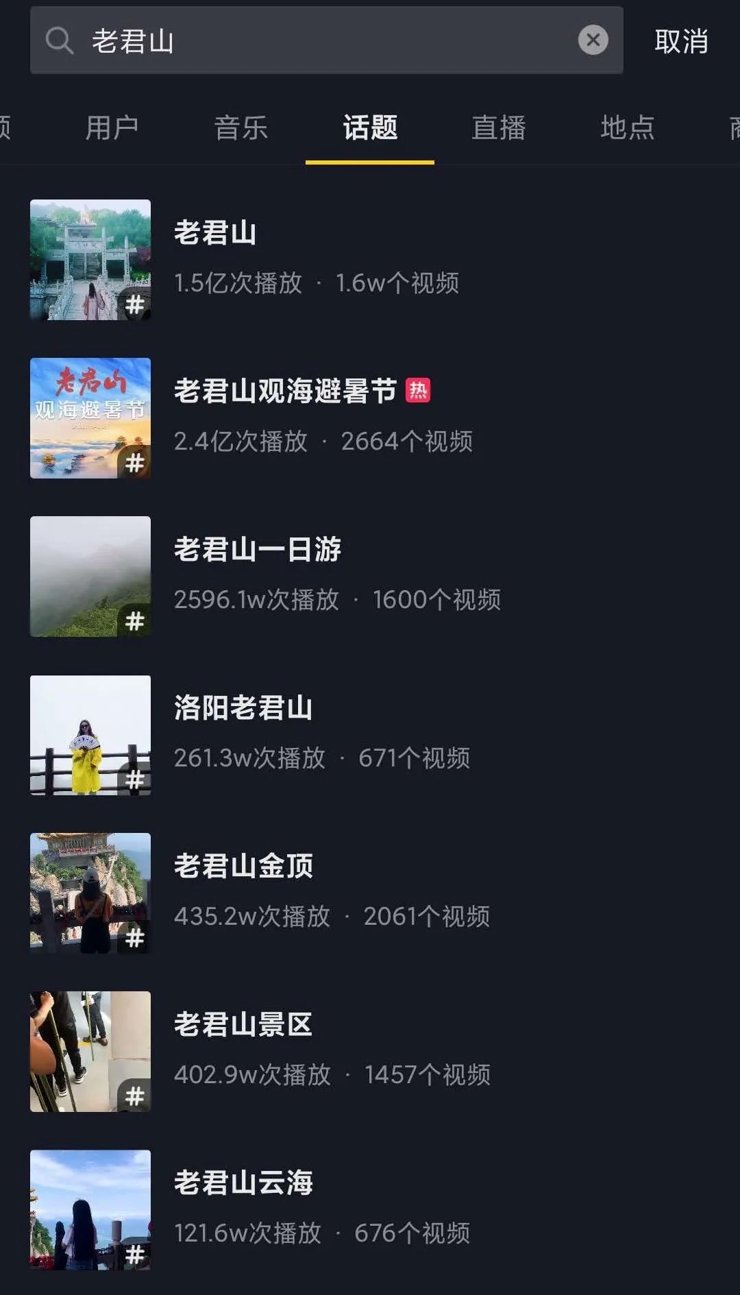 ▼某視頻平臺顯示老君山景區(qū)話題量