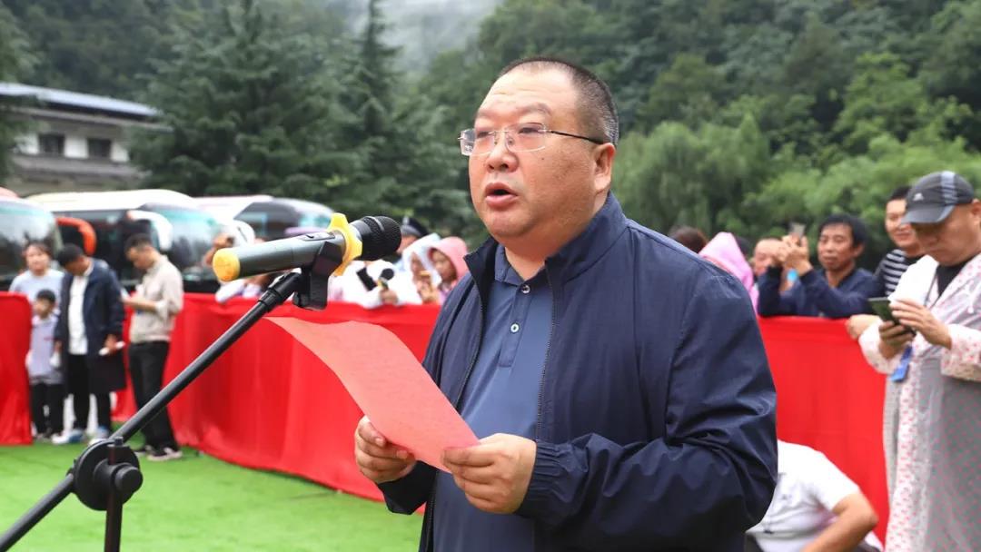 河南老君山國家級自然保護(hù)區(qū)管理局局長徐雷致辭,為金婚老人們致祝福詞。