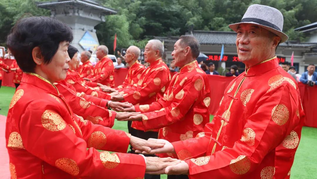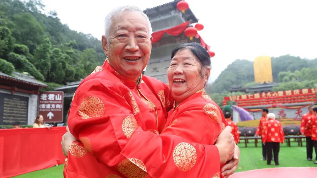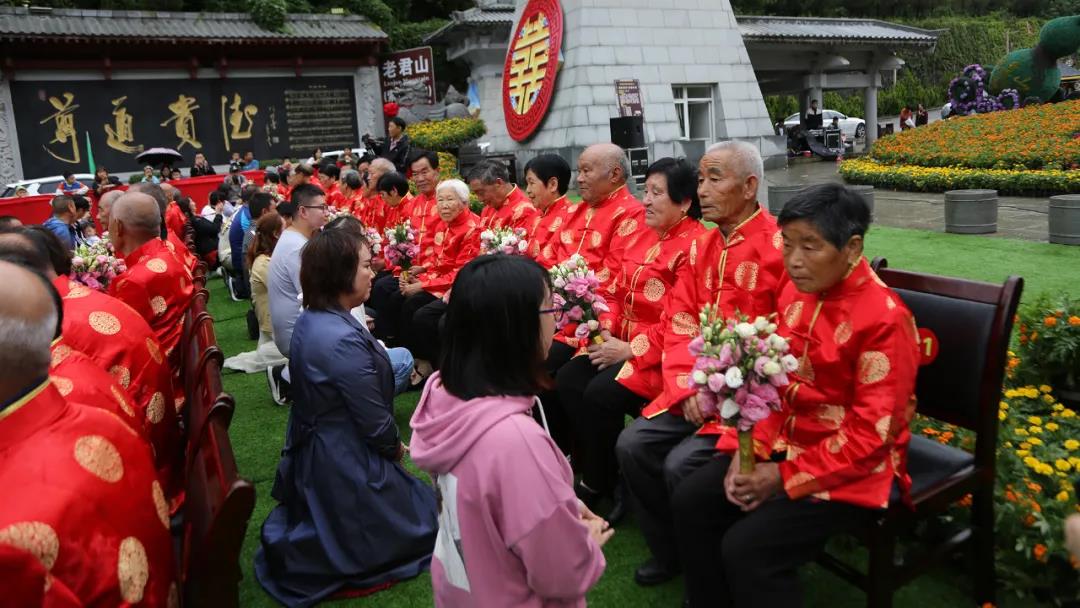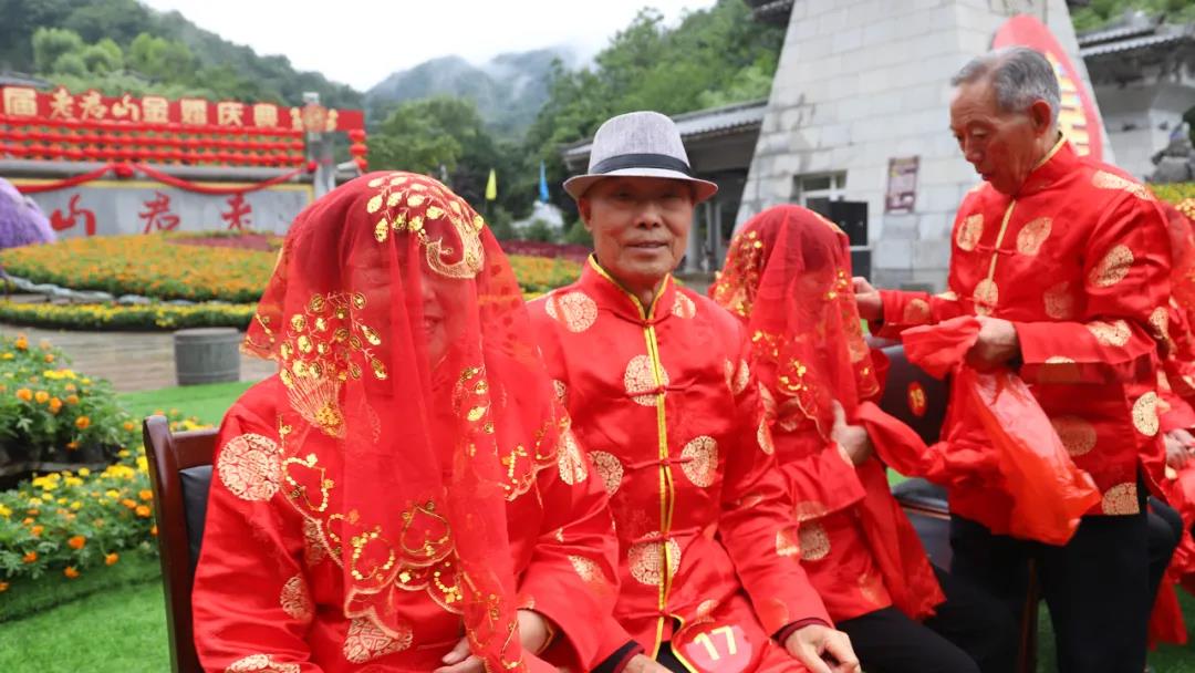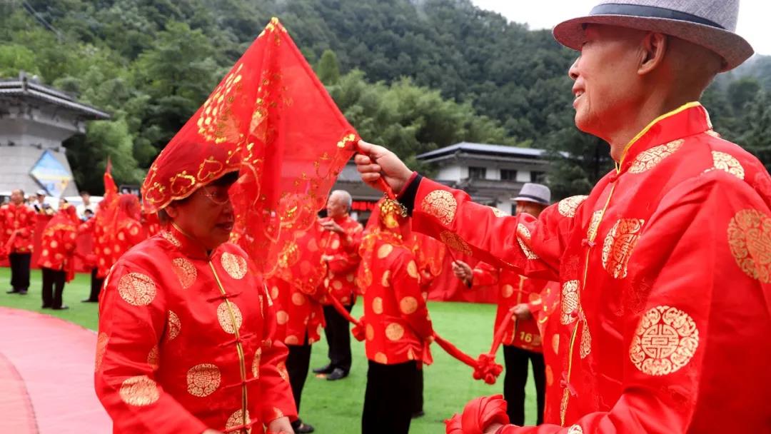 重溫崢嶸歲月,迎接夕陽紅。在老君山攜手入場、行夫妻對拜、挑蓋頭、執(zhí)手禮、后輩獻(xiàn)花多個環(huán)節(jié)下,見證了這28對老人們半個世紀(jì)的愛情。