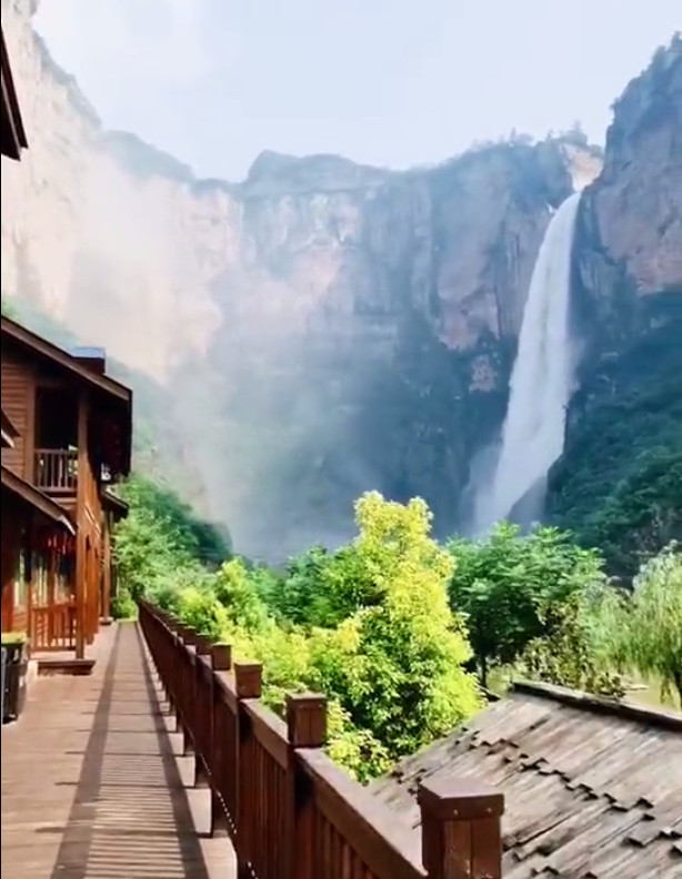 此時(shí),藍(lán)天作為一張巨大的畫紙,流動在此畫作,瀑布和青山便是最生動的色彩。