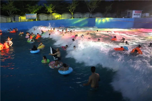 穿上安全衣,在海嘯造浪池迎接巨浪,由遠(yuǎn)及近,席卷而來,尖叫聲、歡呼聲都是這個(gè)夜晚的樂章。
