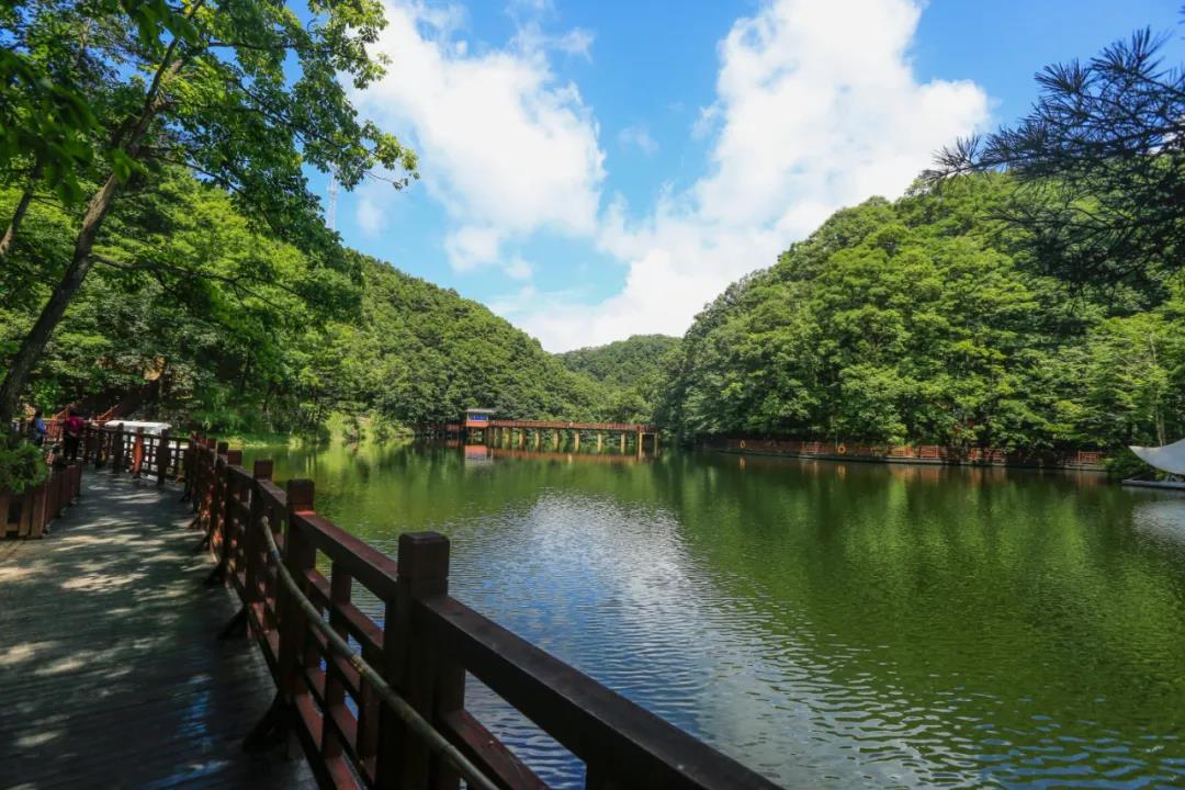 來白云山,漫步在濃密的林蔭道上,和高大挺拔的落葉松處處可見,調(diào)皮的松鼠在樹枝上跳躍,百鳥在林間歡快地鳴唱,微風拂面,呼吸著清涼的空氣。