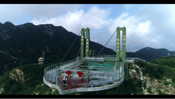 情侶手牽手來到觀音閣許愿,踏步玻璃橋,觀賞七峰山,在最高的云頂之心許下屬于彼此“心連心”的印記,這是屬于愛情結(jié)晶的見證。