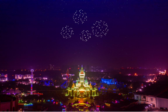夜幕降臨,400架閃爍著燈光的無人機(jī)將緩緩起飛,在“方特城堡”上空勾勒出一幅幅唯美浪漫的動(dòng)態(tài)畫卷。伴隨著震撼人心的音樂,它們將時(shí)而展現(xiàn)出牛郎織女鵲橋相會(huì)的畫面,時(shí)而變換成閃爍跳動(dòng)的紅心,時(shí)而組成綺麗璀璨的繽紛焰火……在燈光幻影間,為游客們營(yíng)造一個(gè)唯美浪漫的七夕之夜。