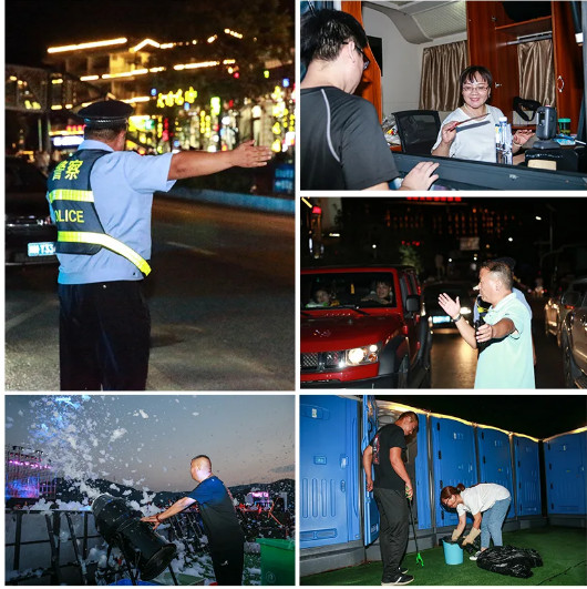 電音節(jié)工作跨時之長、強(qiáng)度之大給各方保障工作帶來了巨大的壓力和挑戰(zhàn),但所有參戰(zhàn)人員沒有絲毫懈怠,慎終如始堅(jiān)守崗位、密切配合、通力合作,為電音節(jié)的成功舉辦提供了強(qiáng)大的組織保障和堅(jiān)強(qiáng)的后盾支撐。公安、交警充分發(fā)揚(yáng)敢打硬仗、善打硬仗的優(yōu)良作風(fēng),全力保障活動秩序、嚴(yán)防安全隱患;供電、通訊部門夜以繼日、提前部署、保障充分;消防、衛(wèi)生、旅游、市場監(jiān)管等部門各司其職、未雨綢繆、堅(jiān)守崗位;云臺山鎮(zhèn)聯(lián)動400余家酒店民宿、餐飲商家全力保障觀眾和游客接待工作……近3000人聯(lián)動作戰(zhàn)確保了電音節(jié)活動的安全有序、順利開展。