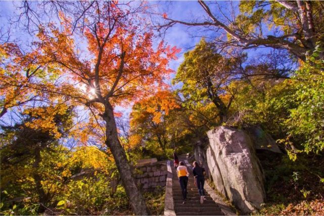 在堯山,山坡漫漫,山峰綿綿,秋的森林,蒼莽遼闊。一片一片的紅楓、黃櫨,酡紅如醉,將大美堯山裝點(diǎn)的如詩(shī)如畫(huà)。