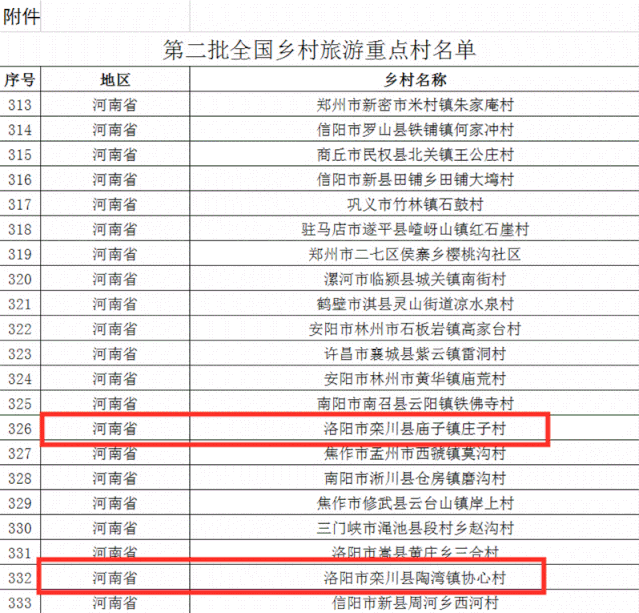8月26日,我國文化和旅游部、國家發(fā)展改革委公布了第二批全國鄉(xiāng)村旅游重點(diǎn)村名店,河南省洛陽市欒川縣廟子鎮(zhèn)莊子村,陶灣鎮(zhèn)協(xié)心村,榜上有名!