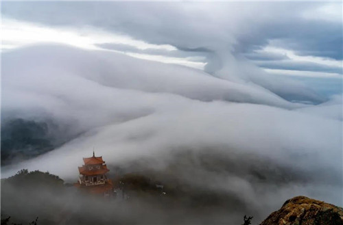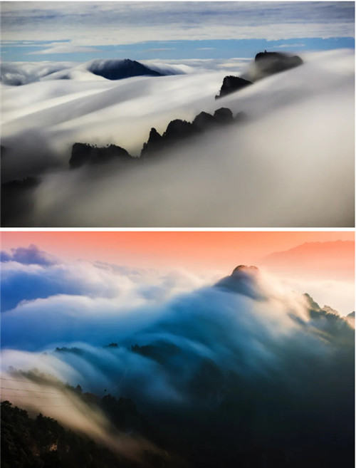 清風過境,云朵漂移,微涼的秋風緩緩地吹散云朵,抬頭看著它們一點點飄遠,不僅治好了頸椎病,心情也好了許多。云朵千變萬化,像海浪、像蘑菇、像綿羊、像魚鱗,目窮所及處,青峰千疊,白云四合。云卷云舒之間,人間仙境的自然魅力更加動人心魄。