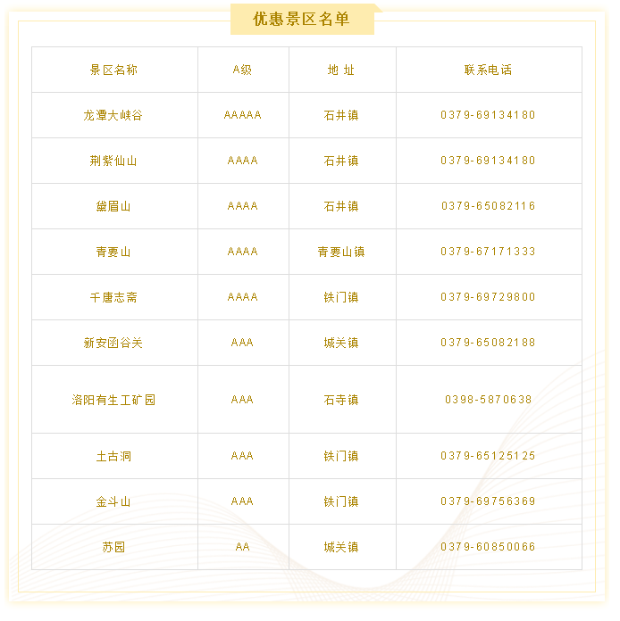 活動(dòng)內(nèi)容: 嵩縣和瀍河區(qū)市民(憑身份證)免門票游覽龍?zhí)洞髰{谷景區(qū)、荊紫仙山景區(qū)在內(nèi)的新安縣所有A級(jí)景區(qū)(需購(gòu)買5元保險(xiǎn))