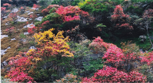 春天的老君山,會(huì)比其他地方晚來(lái)一些,藏在山林石縫中的秀雅杜鵑、太白杜鵑等山花在時(shí)機(jī)合適時(shí),爭(zhēng)相開放,爭(zhēng)奇斗艷。