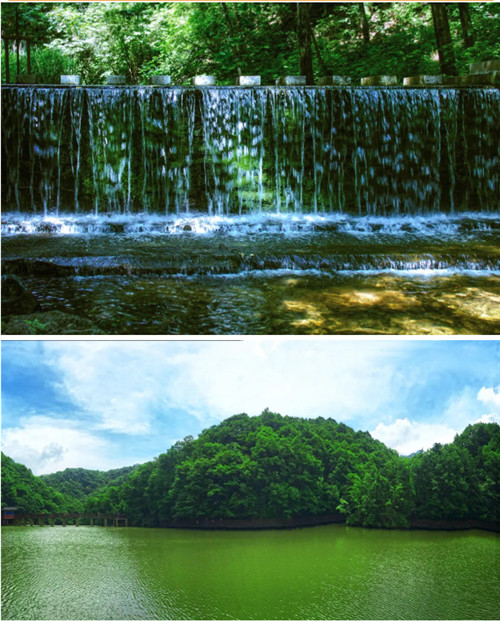 泛黃的嫩綠、透青的翠綠、倒影的水綠、層疊的墨綠,垂掉的油綠,映襯著彎曲逶迤濕漉漉的碎石小徑,浸透了煙波水光霧氣,沿著密匝匝的樹林向山景深處隱去。