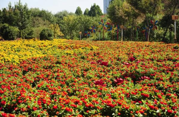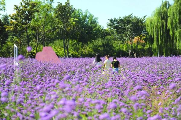 為迎接“雙節(jié)”的到來,綠博園景區(qū)還特意在北門假山處擺放了五彩繽紛的花卉,將景區(qū)裝扮得十分喜慶。節(jié)日期間,這些鮮花將以飽滿的色彩和精神迎接四面八方的游客到來。除此之外,園區(qū)種植的十萬株馬鞭草、近十萬株百日菊也處于盛花期。充滿夢幻色彩的馬鞭草花海猶如紫色的波浪,在秋風(fēng)的吹拂下翻涌跳躍,濃情綻放;鮮紅色的、嫩粉色的、明黃色的、暖橘色的、粉紫色的百日菊猶如一片五彩的綢緞,鮮亮奪目;ê_B片、盎然怒放,將為游客提供一個秋日花海打卡圣地。溫馨提示:柳葉馬鞭草花海的集中觀賞區(qū)在賞花區(qū)、科技園;百日菊花海的觀賞區(qū)位于園區(qū)賞花區(qū)東側(cè)、科技園與內(nèi)環(huán)沿路。