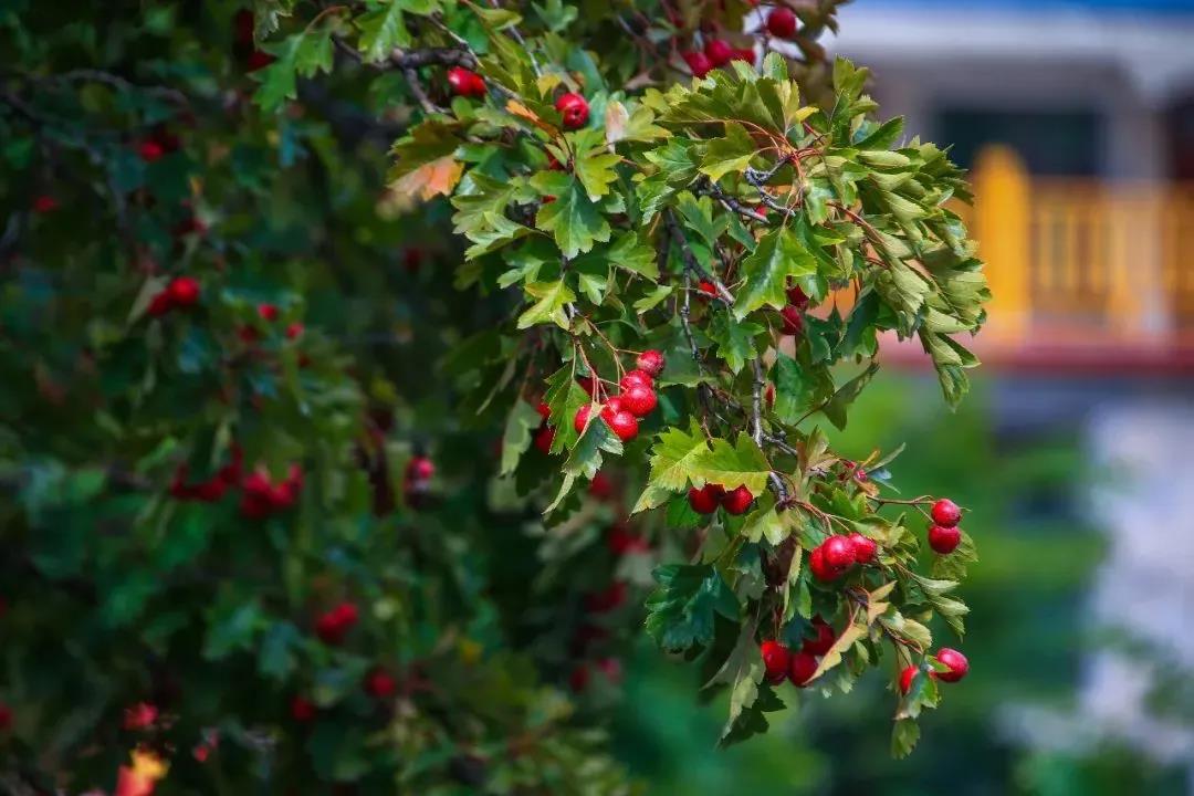 金燦燦的柿子、崩裂的石榴、紅透了的山楂、