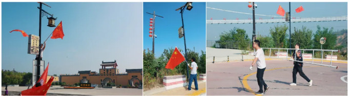 在前往景區(qū)的道路兩旁,您除了能看到芬芳的鮮花外,定會(huì)發(fā)現(xiàn)路燈桿上飄揚(yáng)的國旗?矗皡^(qū)的工作人員正頂著烈日,徒步背著梯子從山下一路走上來安裝國旗,營造國慶氛圍。