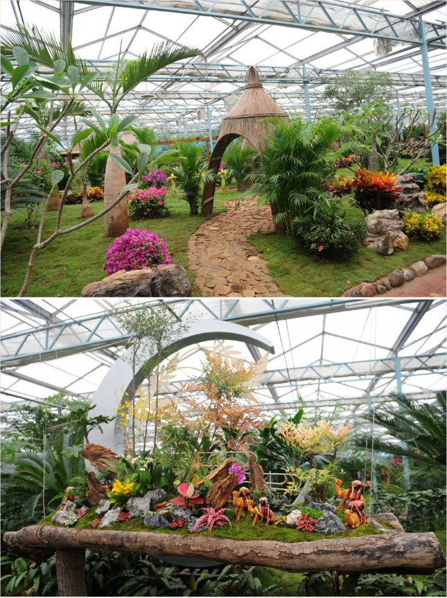 今年的溫室展館精心籌備了花朝月夕、欣欣向榮、山清水秀、綠博十載、熱帶風(fēng)情、精品蘇鐵展示區(qū)、熱帶水果展示區(qū)等十大主題。展館主打蘇鐵展覽,蘇鐵王、蘇鐵女王、非洲蘇鐵、石山蘇鐵、越南篦齒蘇鐵、臺(tái)灣白磷蘇鐵、凱恩蘇鐵、墨西哥鐵等多個(gè)種類的鐵樹構(gòu)成了蘇鐵園。蘇鐵園以各類鐵樹為主元素,熱帶蘭、三角梅、雞蛋花、熱帶椰子、美花紅千層、地涌金蓮等多種花卉點(diǎn)綴裝飾,在色彩、構(gòu)思、布局上,給游客視覺沖擊。