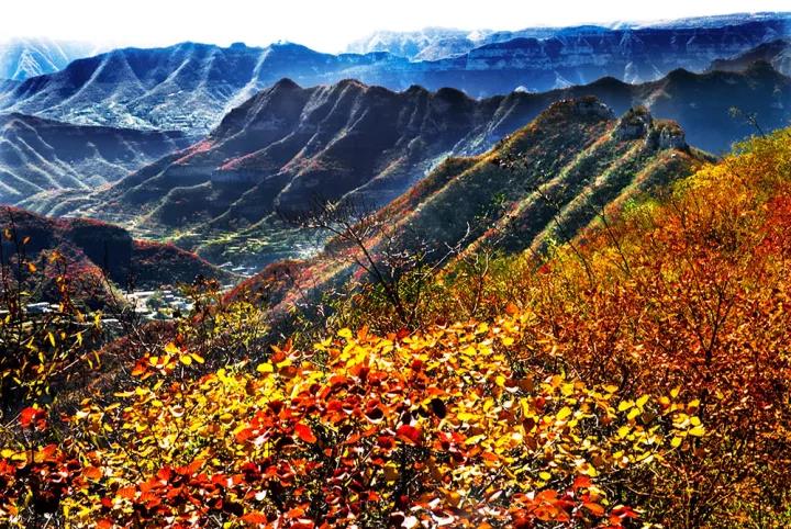 待到金秋時(shí)節(jié),青天河好似打翻了“上帝的調(diào)色板”,將金黃與火紅渲染了3868座山峰,猶如一幅幅精美畫卷。