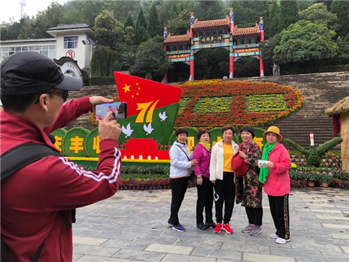 金秋送爽,五谷飄香。雖然豐收節(jié)已過,但收獲的喜悅還在洋溢。景區(qū)在中心廣場上精心布置了“慶豐收·迎小康”、國旗等元素大型雕塑,成為游客拍照打卡的新景觀。