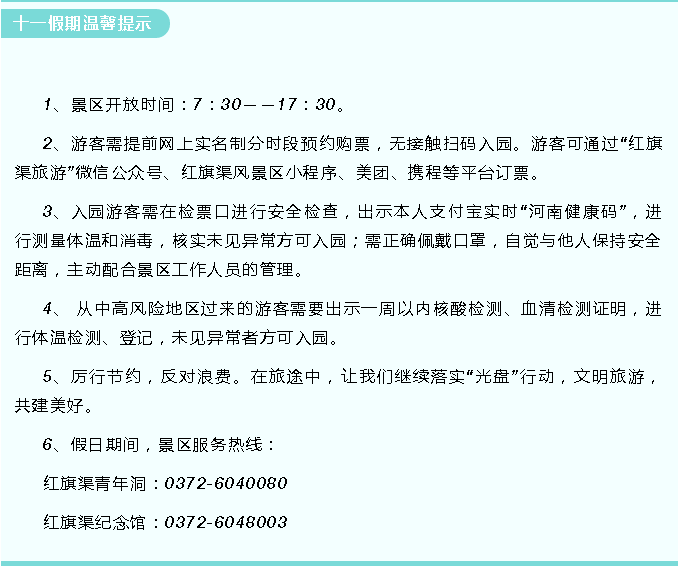 國(guó)慶期間,紅旗渠風(fēng)景區(qū)平均溫度22°C ,涼風(fēng)習(xí)習(xí),空氣清新怡人,正是出游好時(shí)節(jié)!