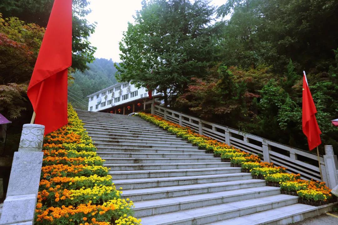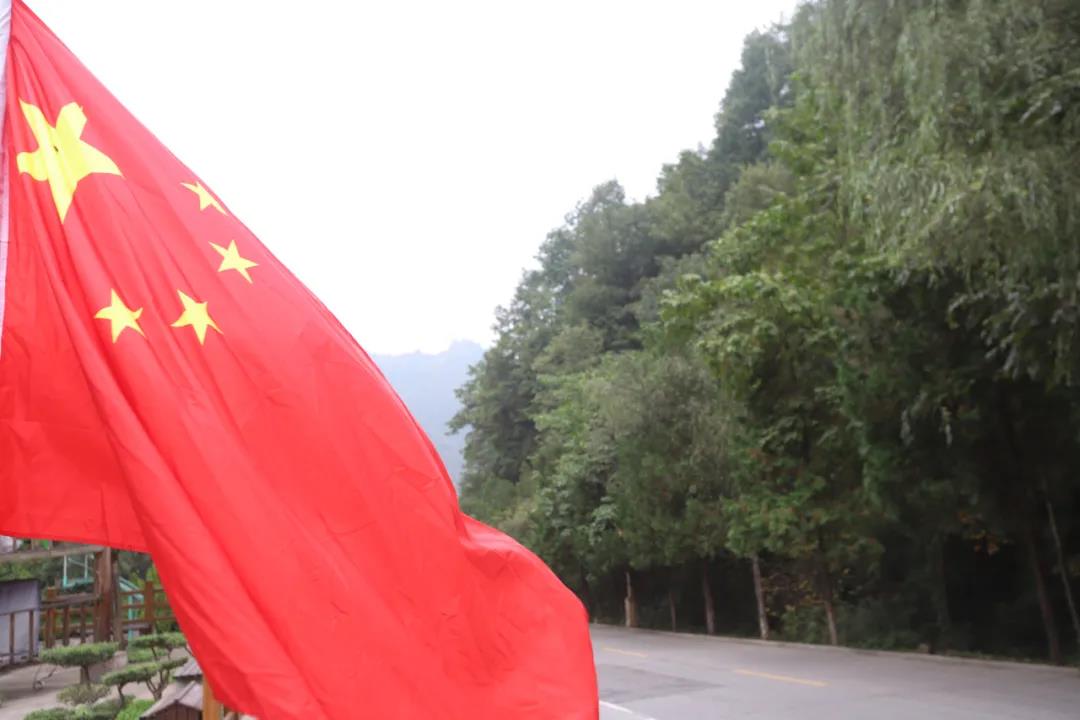 景區(qū)各處紅旗飄揚,迎風搖曳的五星紅旗,將老君山景區(qū)烘托的喜慶祥和。