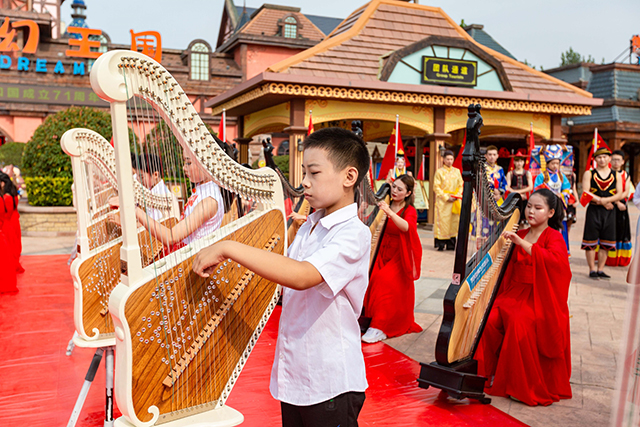 據(jù)鄭州方特旅游度假區(qū)相關(guān)負(fù)責(zé)人介紹,舉辦此次活動(dòng)的主要目的也是想用箜篌這一具有黃河文化色彩、中原文化特質(zhì)的文化形式,來表達(dá)我們中原人民對新中國七十一華誕的祝福;同時(shí),也是想通過這種形式,讓更多的人了解我們自己的傳統(tǒng)文化特色,了解“箜篌”這一具有千年歷史的樂器,感受中原文化的魅力。